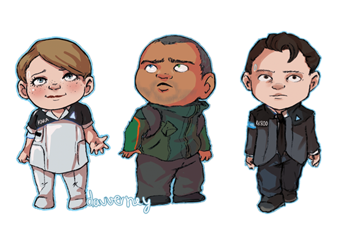 Connor, Kara and Markus from DBH. 55mm aprox. You can buy them individually, in a pack or in a pack+badge.